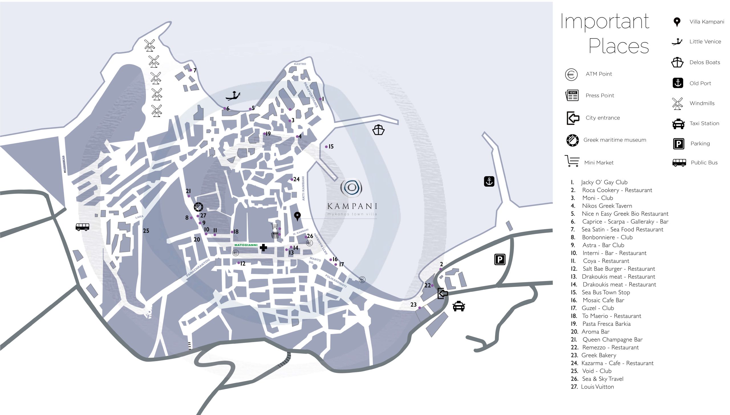 Villa Kampani is located in the most privileged location on the island of Mykonos! Right at the heart of the Mykonos Town, next to the old harbour and close simply to everywhere! Wherever you wish to experience the famous nightlife, shopping to fashionable shops, cocktails, a local dessert or just to explore the island of Mykonos, then in Villa Kampani you will conveniently set off for every destination you want! This is undoubtedly the best spot on the island of Mykonos; the place where your classy Villa Kampani is built at!